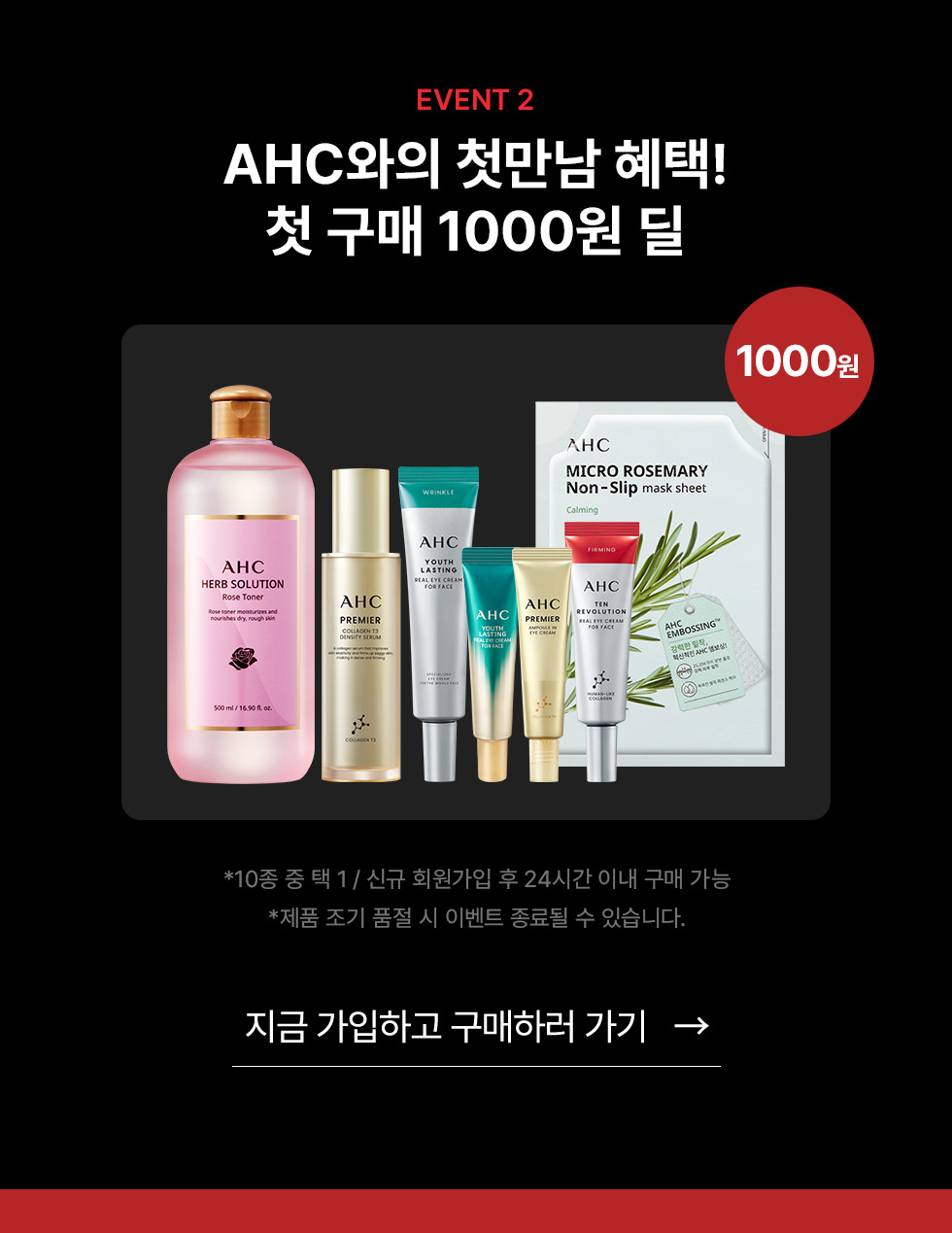2025 AHC DAY 2025.02.17 ~ 2025.02.23 공유하기 아이크림 컬렉션 9900원 특가 EFF PRO 컬렉션 스킨케어 컬렉션 선케어 컬렉션 맨케어 컬렉션 마스크/클렌징/쿠션 컬렉션 상품으로이동 텐레볼루션 리얼 아이크림 35ml 구성 택 1 18% 18,900원 23,000원 SALE BEST 상품으로이동 프리미어 앰플인 아이크림 35ml 구성 택 1 26% 17,200원 23,000원 SALE BEST 상품으로이동 로얄 사포닌 크림 60ml 69% 10,900원 35,000원 SALE 상품으로이동 프리미어 오션 워터 앰플 젤 30ml 67% 9,900원 30,000원 SALE 상품으로이동 프리미어 캐모마일 수딩 앰플젤 마스크 80ml 30% 22,400원 32,000원 SALE 상품으로이동 프로샷 히알루로 딥볼륨5 인트라 세럼 40ml 20% 25,600원 32,000원 SALE NEW 상품으로이동 프로샷 히알루로 딥볼륨5 캡슐 아이크림 포 페이스 30ml 20% 21,600원 27,000원 SALE NEW 상품으로이동 히알루로 딥볼륨5 트리트먼트 에멀젼 100ml 20% 20,800원 26,000원 SALE NEW 상품으로이동 히알루로 딥볼륨5 트리트먼트 에센스 130ml 20% 22,400원 28,000원 SALE NEW 상품으로이동 히알루로 딥볼륨5 오버데이 나이트 트리트먼트 젤 50ml 20% 24,000원 30,000원 SALE NEW 상품으로이동 프로샷 콜라 쥬비네이션 리프트4 인트라 세럼 40ml 20% 28,800원 36,000원 SALE NEW 상품으로이동 프로샷 콜라 쥬비네이션 리프트4 캡슐 인퓨즈드 아이크림 포 페이스 30ml 20% 24,900원 31,000원 SALE NEW 상품으로이동 콜라 쥬비네이션 리프트4 트리트먼트 에멀젼 100ml 20% 24,000원 30,000원 SALE NEW 상품으로이동 콜라 쥬비네이션 리프트4 트리트먼트 에센스 130ml 20% 25,600원 32,000원 SALE NEW 상품으로이동 콜라 쥬비네이션 리프트4 오버데이 나이트 트리트먼트 밤 50ml 20% 27,200원 34,000원 SALE NEW 상품으로이동 프로샷 콜라쥬비네이션 리프팅 듀오(세럼40ml + 아이크림30ml) 25% 50,400원 67,000원 SALE NEW 상품으로이동 프로샷 글루타 액티베이션 브라이트3 인트라 세럼 40ml 20% 27,200원 34,000원 SALE NEW 상품으로이동 프로샷 글루타 액티베이션 브라이트3 캡슐 아이크림 포 페이스 30ml 20% 23,200원 29,000원 SALE NEW 상품으로이동 글루타 액티베이션 브라이트3 트리트먼트 에멀젼 100ml 20% 22,400원 28,000원 SALE NEW 상품으로이동 글루타 액티베이션 브라이트3 트리트먼트 에센스 130ml 20% 24,000원 30,000원 SALE NEW 상품으로이동 글루타 액티베이션 브라이트3 오버데이 나이트 트리트먼트 크림 50ml 20% 25,600원 32,000원 SALE NEW 상품으로이동 리뉴에이지 토탈 4종 기프트 세트 8% 51,300원 55,500원 SALE BEST 상품으로이동 블랙 캐비어 유스 리츄얼케어 세트 64% 43,900원 119,600원 SALE BEST 상품으로이동 바이탈 골든콜라겐 유스토탈 케어 세트 64% 43,900원 119,600원 SALE BEST 상품으로이동 멜라루트크림 50ml+ 택 1 57% 29,400원 68,000원 SALE 상품으로이동 허브 솔루션 토너 대용량 500ml (레몬/로즈) 57% 13,900원 32,000원 SALE BEST 상품으로이동 리뉴에이지 토탈 너리싱 토너 130ml 51% 15,800원 32,000원 SALE 상품으로이동 리뉴에이지 토탈 밸런싱 에멀젼 130ml 51% 15,800원 32,000원 SALE 상품으로이동 리뉴에이지 토탈 리셋 크림 50ml 61% 18,900원 48,000원 SALE 상품으로이동 블랙캐비어 토너 140ml 31% 13,800원 19,900원 SALE 상품으로이동 블랙캐비어 로션 140ml 31% 13,800원 19,900원 SALE 상품으로이동 블랙캐비어 크림 50g 49% 15,400원 29,900원 SALE 상품으로이동 바이탈 골든콜라겐 토너 140ml 35% 13,100원 19,900원 SALE 상품으로이동 바이탈 골든콜라겐 로션 140ml 35% 13,100원 19,900원 SALE 상품으로이동 바이탈 골든콜라겐 크림 50g 51% 14,700원 29,900원 SALE 상품으로이동 마스터즈 에어 리치 선스틱 14g+22g 45% 29,600원 53,000원 SALE BEST 입고 알림 신청 입고 알림 취소 마스터즈 카밍 워터풀 선스틱 22g +미니선크림 Sold Out SALE NEW 입고 알림 신청 입고 알림 취소 마스터즈 아쿠아리치 선크림 듀오 세트 (30ml+30ml)+프렙리셋클렌징폼 30ml Sold Out SALE BEST 입고 알림 신청 입고 알림 취소 마스터즈 멜라프로텍트 선크림40ml+추가구성 Sold Out SALE 상품으로이동 마스터즈 프로패치 2스텝(4매)+택 1개 56% 16,000원 36,000원 SALE BEST 상품으로이동 세이프온 마일드 선쿠션 25g 본품 33% 19,700원 29,000원 SALE BEST 상품으로이동 세이프온 시카 카밍 선쿠션 25g / 택 1 33% 19,700원 29,000원 SALE 상품으로이동 온리포맨 포어프레쉬 올인원 에센스 200ml 69% 19,900원 63,300원 SALE 상품으로이동 온리포맨 올인원 에센스 200ml 69% 19,900원 63,300원 SALE BEST 상품으로이동 온리포맨 토너 150ml 46% 13,500원 25,000원 SALE 상품으로이동 온리포맨 로션 150ml 46% 13,500원 25,000원 SALE 상품으로이동 온리포맨 폼 클렌저 140ml 57% 10,500원 24,000원 SALE 상품으로이동 마이크로 레드 콜라겐 착붙 마스크시트 33ml*10ea 37% 19,000원 30,000원 SALE 상품으로이동 마이크로 로즈마리 착붙 마스크시트 33ml*10ea 37% 19,000원 30,000원 SALE 상품으로이동 마이크로 비타민 착붙 마스크시트 33ml*10ea 37% 19,000원 30,000원 SALE 상품으로이동 마이크로 퓨어 워터 착붙 마스크시트 33ml*10ea 37% 19,000원 30,000원 SALE 상품으로이동 아우라 시크릿 톤업 쿠션 본품 15g / 리필 27% 17,600원 24,000원 SALE 상품으로이동 프렙 리셋 클렌징 파우더 40g+미니 클렌징오일 20% 17,600원 22,000원 SALE NEW 상품으로이동 프렙 리셋 미셀라 클렌징 워터 255ml + 클렌징폼 30ml 20% 13,600원 17,000원 SALE NEW 다른 진행중인 이벤트 [이벤트]AHC 카카오 채널 친구 추