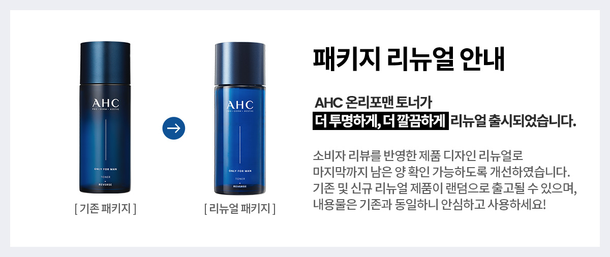 화장품책임 판매업자/화장품제조업자/제조국 (주)카버코리아 사용기한 또는 개봉 후 사용기간 [제조일자~유통기한] AHC 온리포맨토너(AD3) 150ml : 2025.08.27~2028.02.26 / AHC 온리포맨로션(AD3) 150ml : 2025.08.08~2028.02.07 / AHC 온리포맨폼클렌저(AD2) 140ml : 2025.08.27~2028.02.26 피부 타입 모든 피부 타입 품질보증 기준 본 상품에 이상이 있을 경우 공정거래위원회 고시 ‘소비자 분쟁해결기준’에 의하여 보상해 드립니다. 소비자상담관련 전화번호 AHC 소비자 상담실 080-332-0855 *본 상품정보는 공정거래위원회의 「전자상거래 등에서의 상품정보제공 고시」에 따라 작성되었습니다.