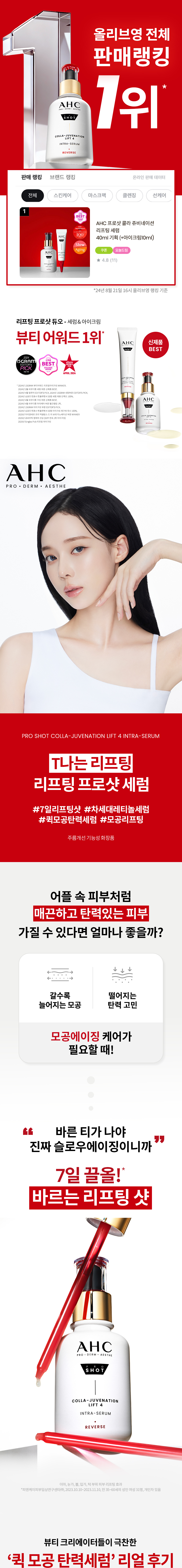 화장품책임 판매업자/화장품제조업자/제조국 (주)카버코리아 / 세럼: 코스맥스, 아이크림: 한국콜마 / 대한민국 사용기한 또는 개봉 후 사용기간 제조일자~유통기한 : 세럼 - 2025.07.17~2028.07.16 / 아이크림 - 2025.09.11~2028.09.10 / 에센스 - 2024.03.02~2027.03.01 / 오일 - 2025.04.29~2028.04.28 피부 타입 모든 피부 타입 품질보증 기준 본 상품에 이상이 있을 경우 공정거래위원회 고시 ‘소비자 분쟁해결기준’에 의하여 보상해 드립니다. 소비자상담관련 전화번호 AHC 소비자 상담실 080-332-0855 *본 상품정보는 공정거래위원회의 「전자상거래 등에서의 상품정보제공 고시」에 따라 작성되었습니다.