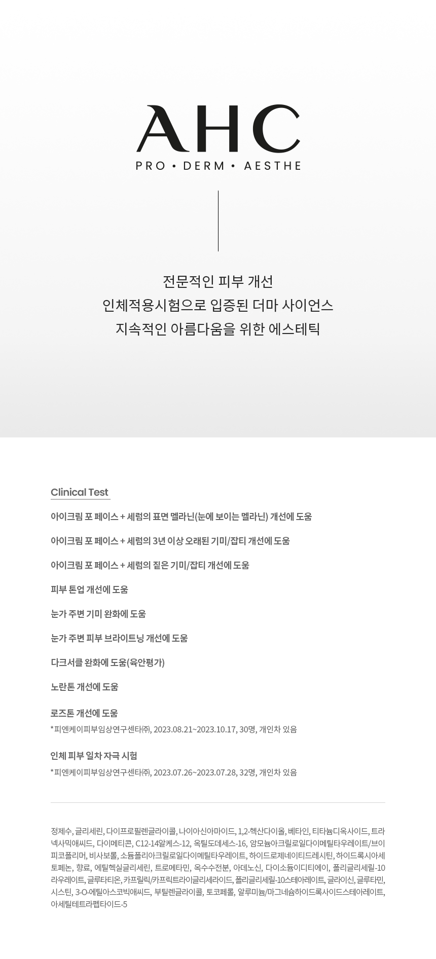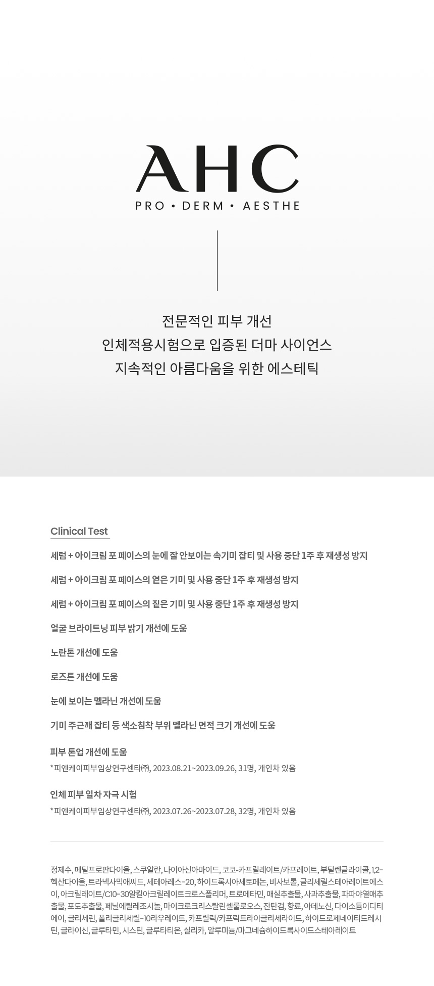 화장품책임 판매업자/화장품제조업자/제조국 (주)카버코리아 / 한국콜마주식회사 / 대한민국 사용기한 또는 개봉 후 사용기간 피부 타입 모든 피부 타입 품질보증 기준 본 상품에 이상이 있을 경우 공정거래위원회 고시 ‘소비자 분쟁해결기준’에 의하여 보상해 드립니다. 소비자상담관련 전화번호 AHC 소비자 상담실 080-332-0855 *본 상품정보는 공정거래위원회의 「전자상거래 등에서의 상품정보제공 고시」에 따라 작성되었습니다.